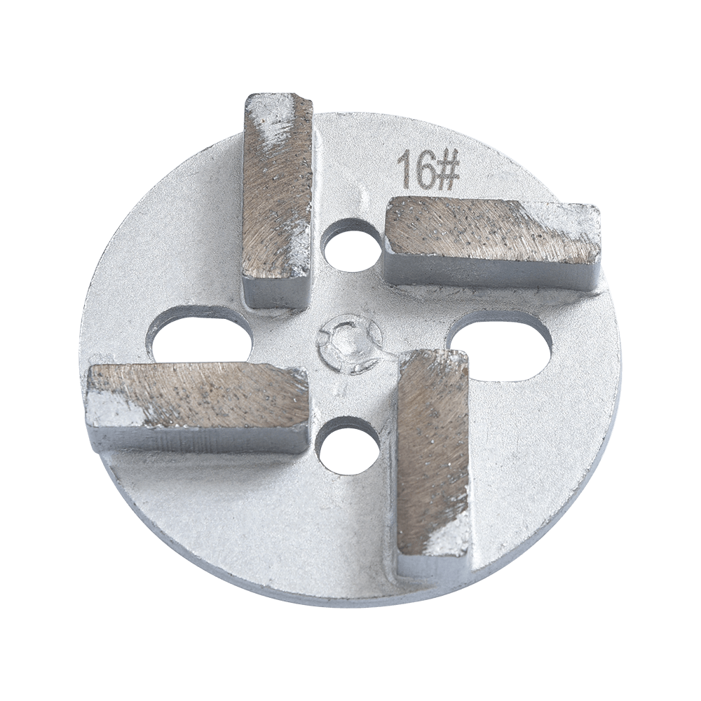 16# Grit Diamond Diamond Cutter glava se uglavnom koristi u fazi grubog mljevenja poda, posebno za početno mljevenje novonastalih betonskih podova. Zbog velike mrvice od 16#, može učinkovito ukloniti nepravilne dijelove površine poda, poput podignutih cementnih blokova i grube betonske površine, na taj način postavljajući temelj za naknadne procese sitnog mljevenja i poliranja.